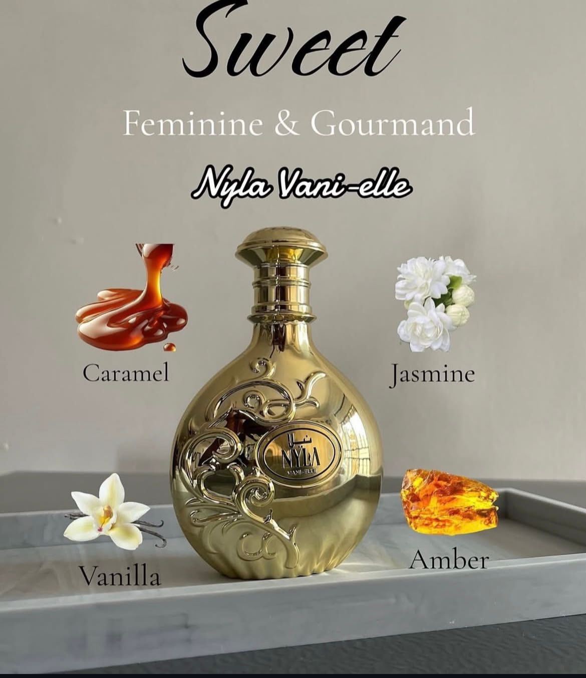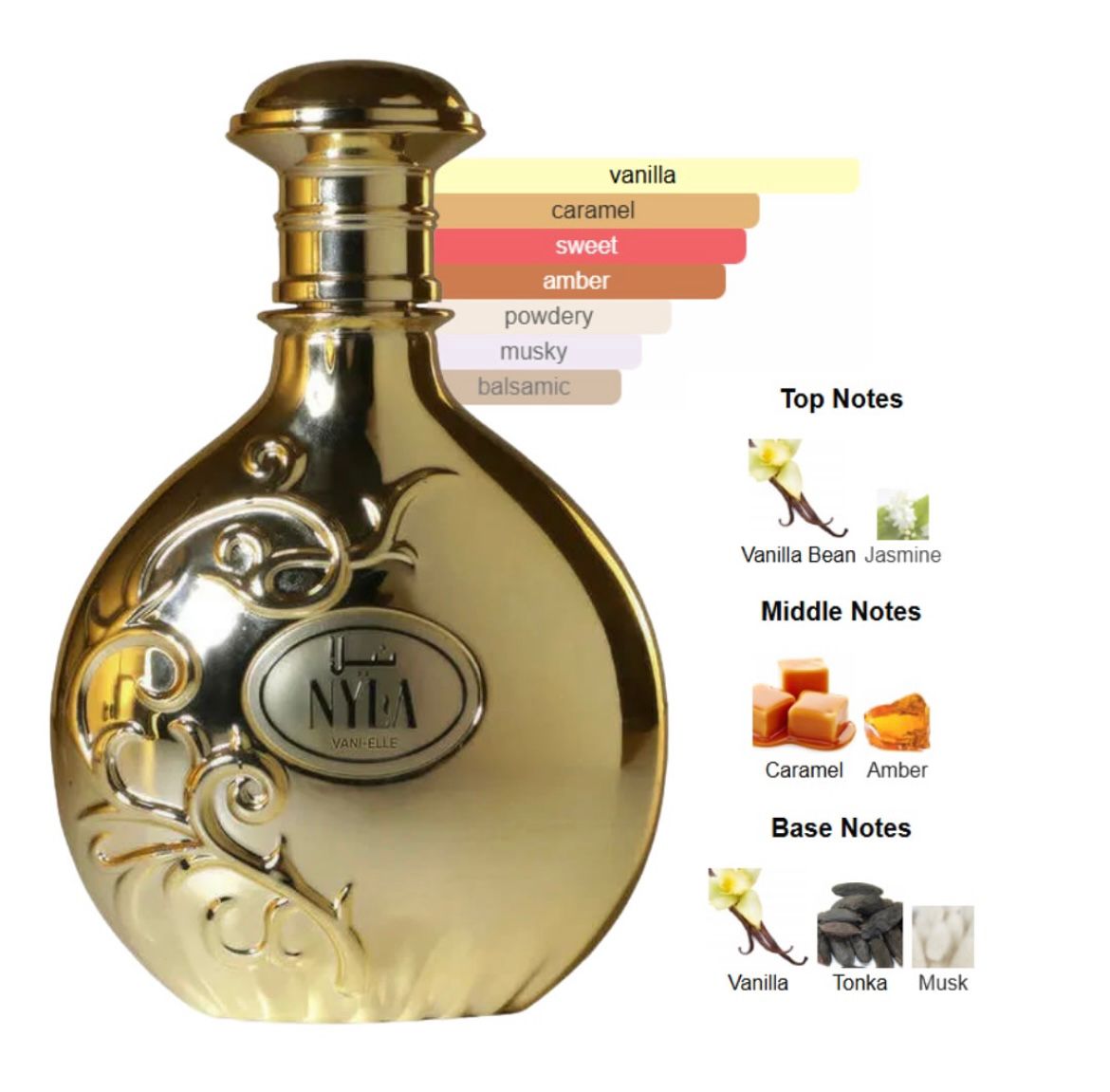 Nyla Vani-Elle is an intriguing perfume of sweet tenderness and innocence. It transports you back in time, right into the world of love, warmth and radiance – into your childhood. The perfume evokes desire, nostalgia and yearning.