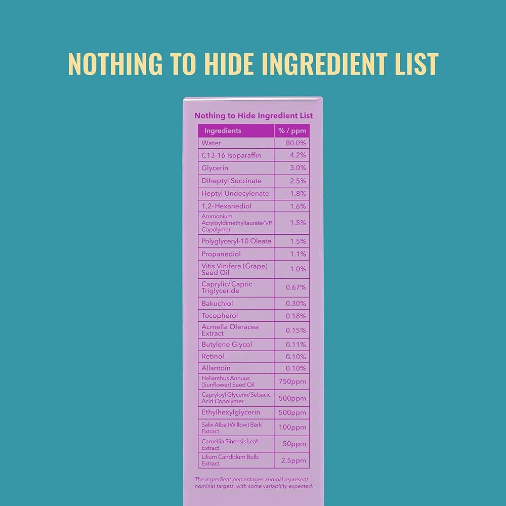 - Grape seed oil, allantoin, and acmella oleracea extract help nourish and soothe skin.