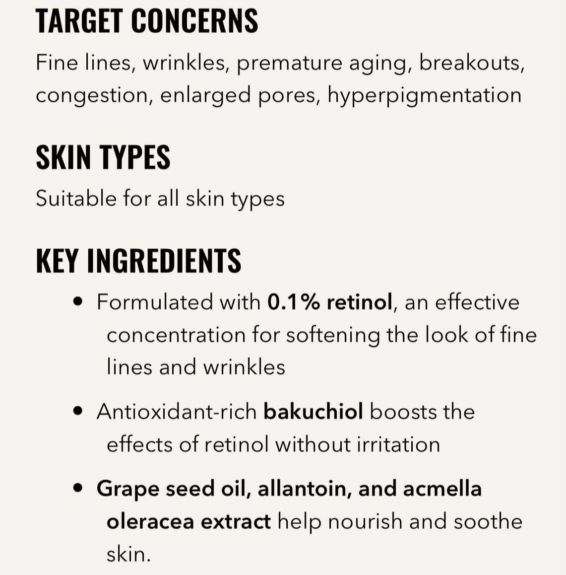 Antioxidant-rich bakuchiol boosts the effects of retinol without irritation.